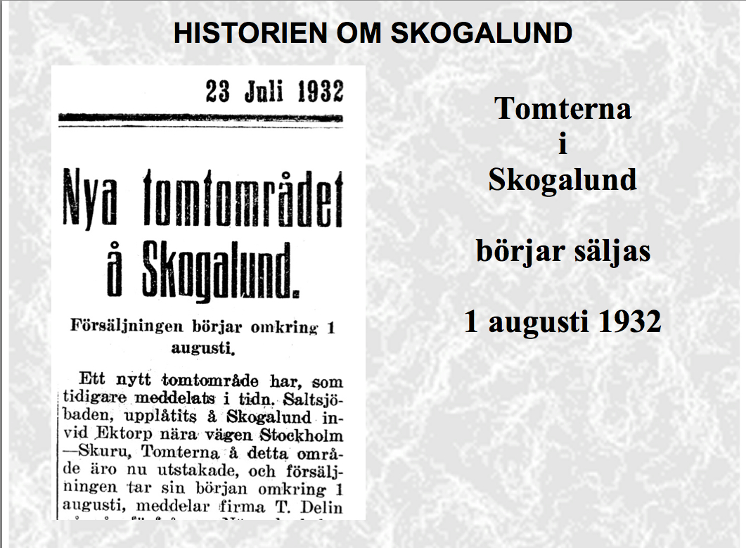 Bilder från Skogalund 75 år Detta är ett urval av bilder från den presentation Boo Jonsson satte ihop till 75-årsfirandet.